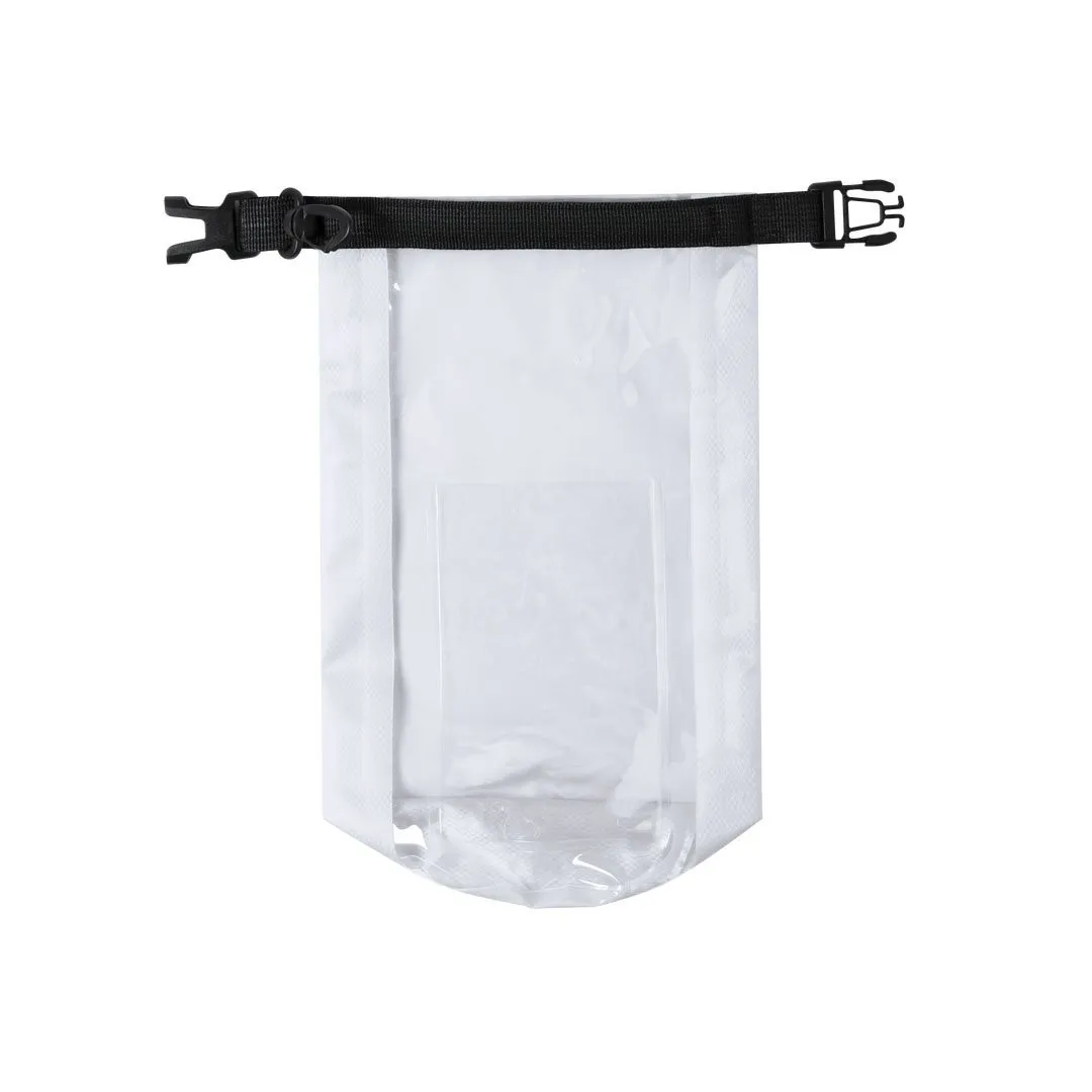 Bolsa impermeable en suave y resistente ripstop con cierre estanco de seguridad de 2l de capacidad. Ventana transparente en un lado de la bolsa con superficie táctil para usar smartphone. Asa con cierre de clic y accesorio de transporte con cierre de mosquetón. Disponible en variada gama de colores, con detalles y accesorios en color negro.