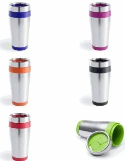 Vaso de acero inox de 450ml de capacidad con cuerpo de acabado brillante con accesorios a juego y en vivos colores. Con tapa dosificador de seguridad y presentado en atractiva caja de diseño.