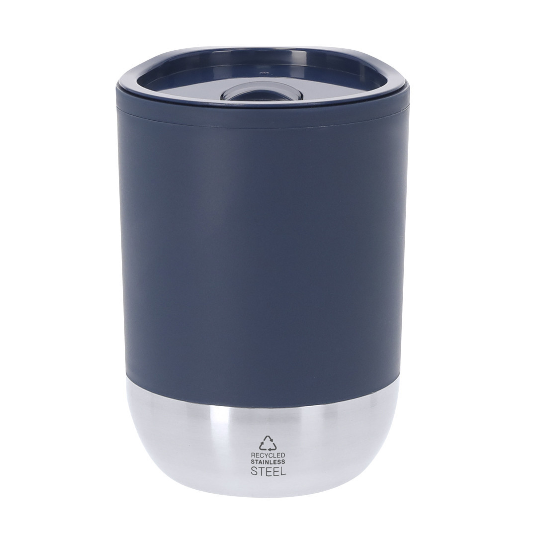 Vaso térmico de 290 ml de capacidad. Fabricado en resistente PP Reciclado de doble pared en combinación con base en Acero Inox Reciclado. Tapa con dosificador de fácil apertura, libre de BPA. Es ideal para tener en tu escritorio, mesa o en cualquier superficie donde disfrutar tranquilamente de tu bebida favorita. Con certificación Food Grade, garantizando la seguridad cuando los alimentos entran en contacto con el material usado para fabricar el producto. Con distintivo de Acero Inox Reciclado.
