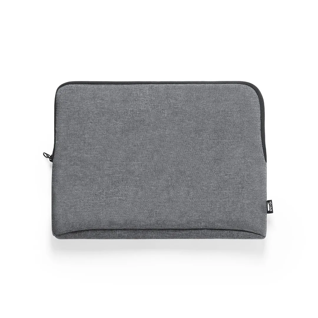 Funda para ordenador portátil de línea nature y en resistente 600D RPET efecto melange, elaborado a partir de plástico reciclado para así fomentar la reutilización de residuos plásticos y contribuir a la sostenibilidad del planeta. Detalles en negro y compartimento principal con cierre de cremallera. Interior totalmente acolchado y forrado, con distintivo RPET en etiqueta exterior.