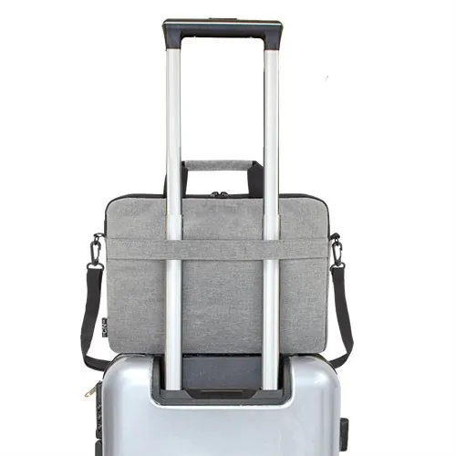 Incluye bolsillo exterior con cremallera y sujeción elástica para llevar en un trolley, además puedes llevarlo como maletín o bandolera.