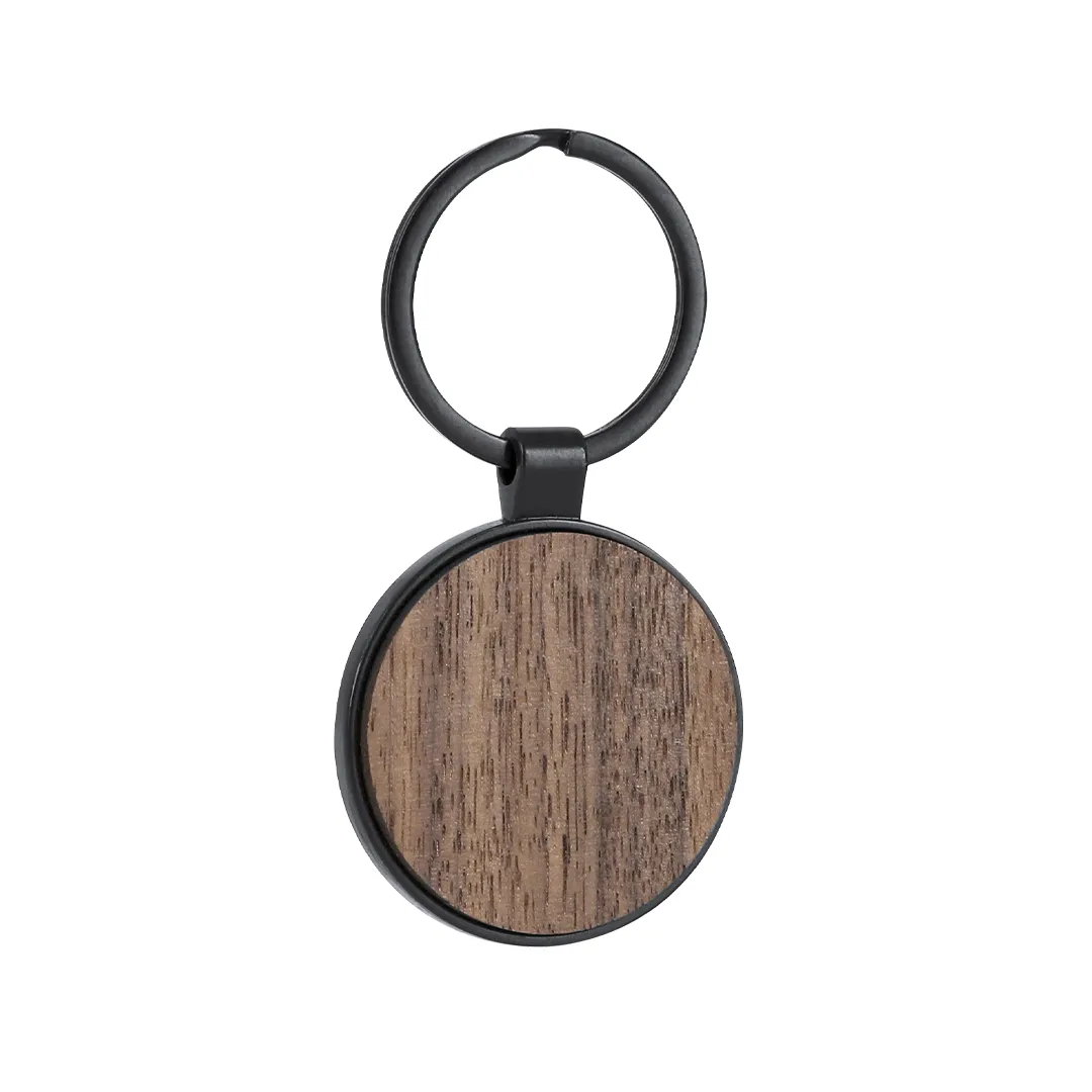 -Llavero en madera de nogal y accesorios metálicos con acabado en negro mate.
