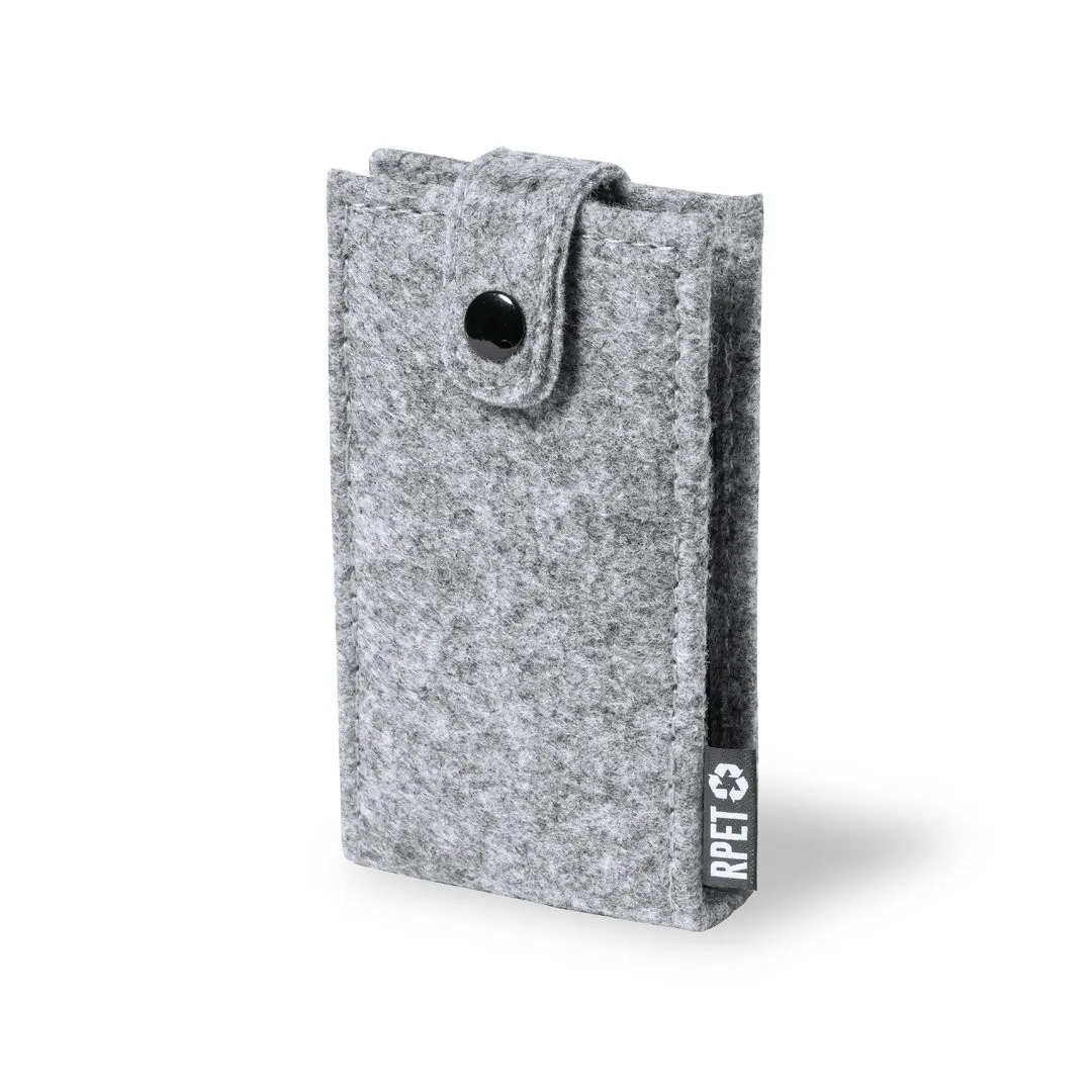 Set de manicura de 6 accesorios, con funda fabricada en resistente fieltro RPET, fruto de la combinación del proceso de reciclaje de materiales plásticos junto con la técnica milenaria de fabricación del fieltro, dando como resultado un material de eco-tendencia que, además de ser de origen reciclado, también se convierte en reciclable. Accesorios metálicos en acero inox de acabado negro: tijeras, pinzas, cortaúñas, lima y 2 quitacutículas. Con cierre de botón y etiqueta distintiva RPET en exterior.