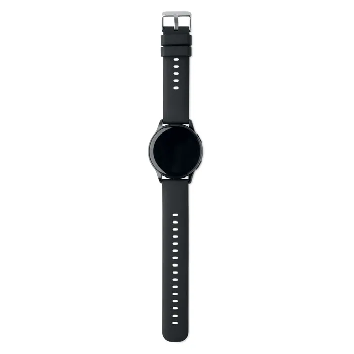 Smartwatch inalámbrico waterproof IP67 de aleación de zinc con correa de silicona. Pantalla táctil AMOLED de 1.32''. Batería recargable Li-Pol de 300 mAh. Funciona con una aplicación gratuita (FitCloudPro disponible en iOS y Android).