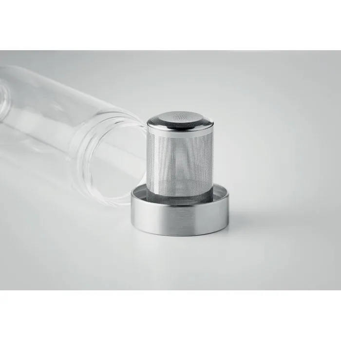 Botella de vidrio de borosolicato de alta calidad con infusor de té y funda de neopreno. Capacidad 500 ml.