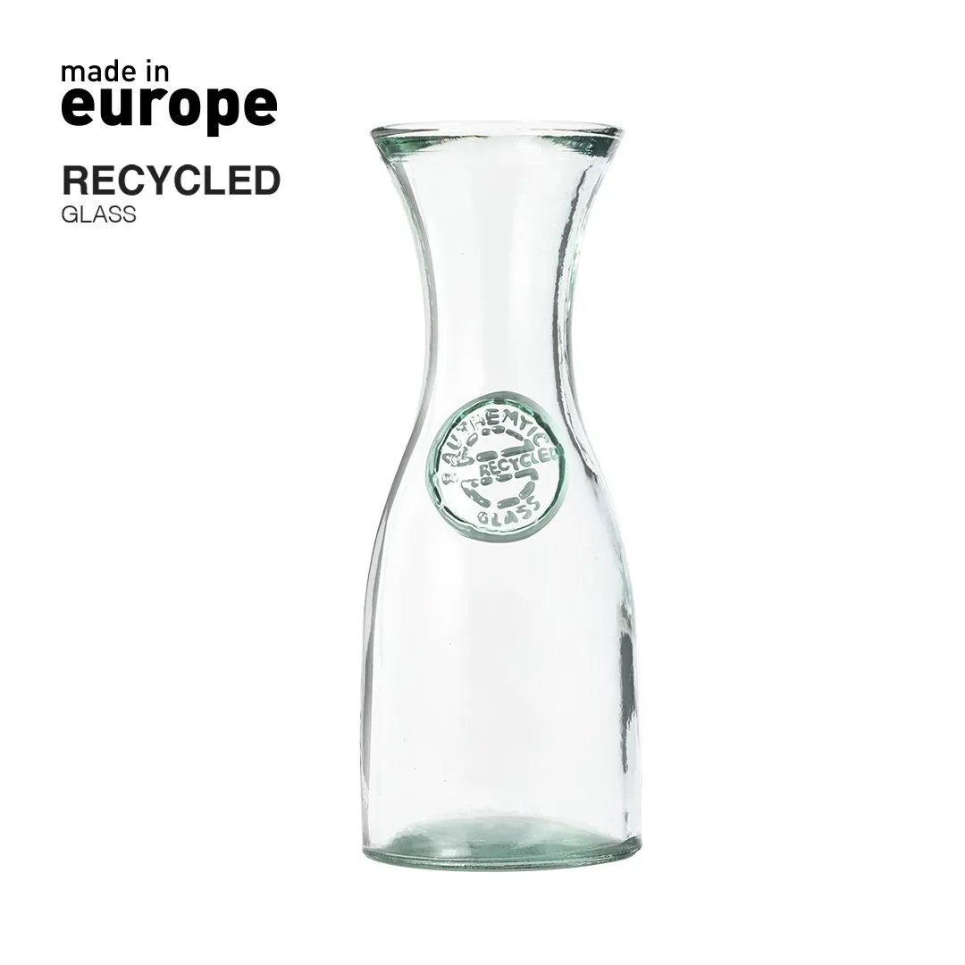 Botella de línea nature de 800ml de capacidad. De fabricación europea y hecha en vidrio reciclado GRS (Global Recycled Standard / Estándar de Reciclaje Global), que garantiza el origen reciclado del material usado para fabricar el producto. Presentado en estuche de cartón reciclado con ventana.