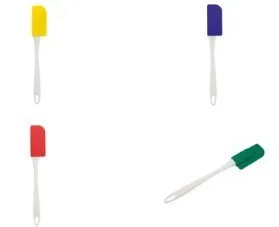 Paleta de cocina con extremo de silicona en vivos colores y confortable mango ergonómico con troquelado para colgar.