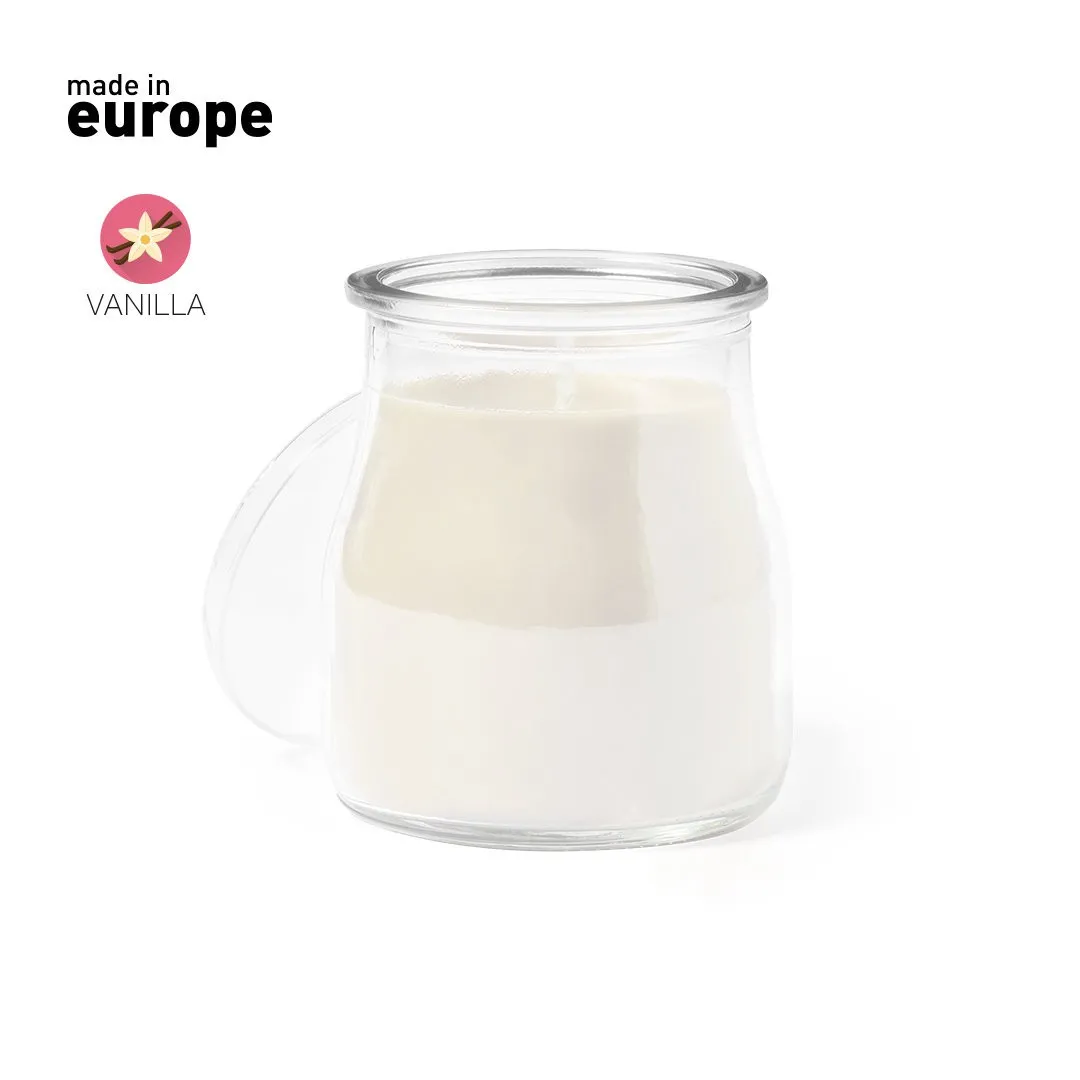 Vela aromática en tarro de cristal, disponible en aromas variados: blanco vainilla; rojo frutas del bosque; azul océano y verde musgo. Con distintivo Made In Europe.