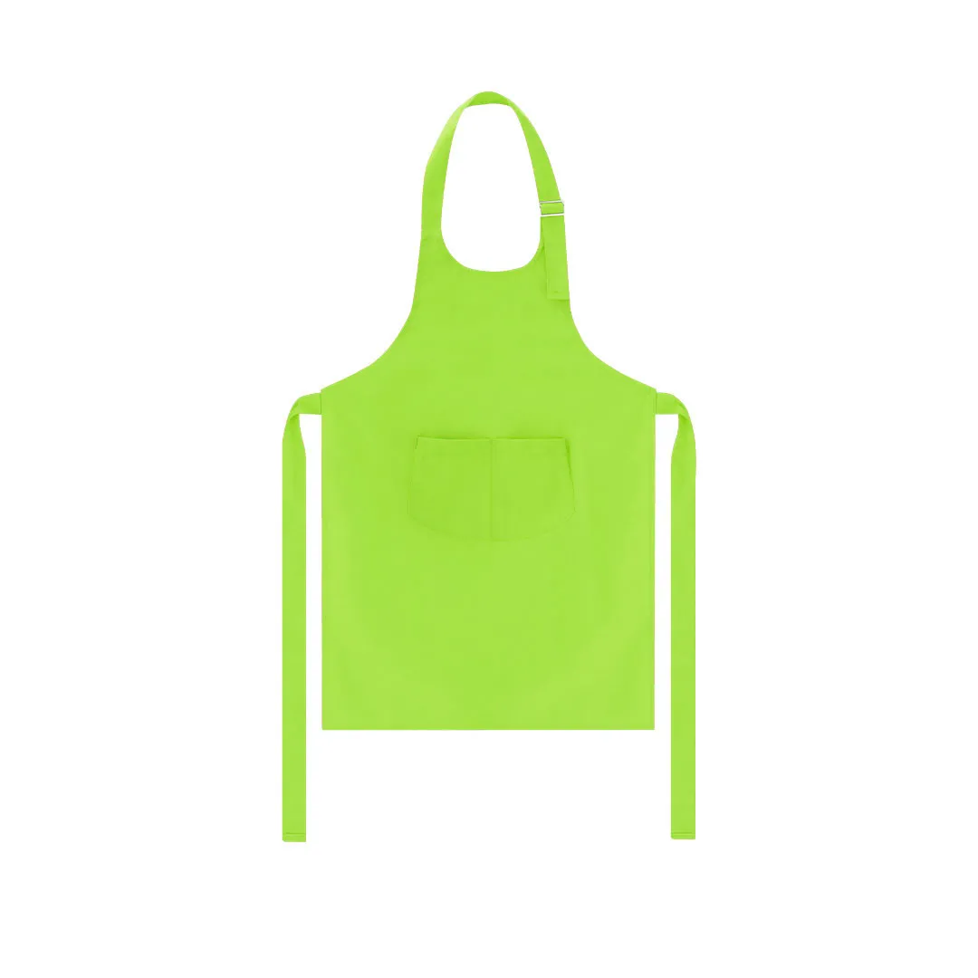 Delantal infantil de alta calidad fabricado en combinación de algodón y poliéster. Con práctico bolsillo doble frontal y cintas de cuello con ajustador cromado. De corte por debajo de la rodilla que proporciona una excelente cobertura.