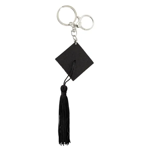 Llavero con birrete de graduación fabricado en fieltro con borla decorativa y anilla metálica. Ideal para eventos conmemorativos.