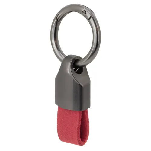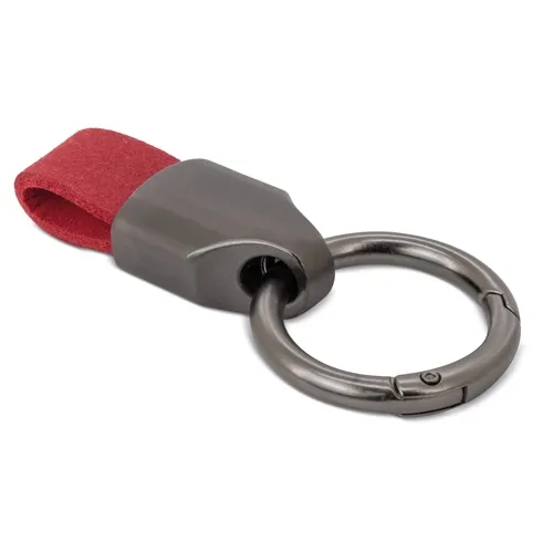Llavero con cuerpo metálico combinado con una resistente cinta de silicona negra en forma de bucle.
