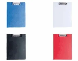 Clásica carpeta de pinza en variados colores y acabado en suave PVC. Con bolsillo transparente de solapa interior en resistente PVC.