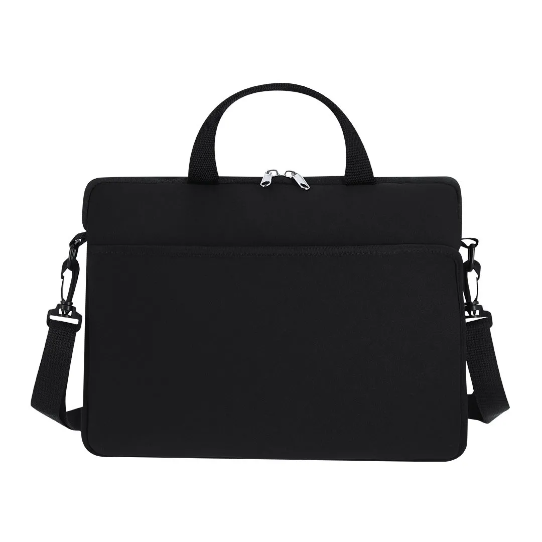 Funda para ordenador portátil confeccionada en soft shell, con compartimento principal acolchado para dispositivos de hasta 14 pulgadas. Diseñada con cierre de cremallera de doble tirador y un práctico bolsillo exterior de acceso rápido. Fácil de transportar gracias a sus asas de mano, cinta para hombro ajustable y cinta trasera para trolley.