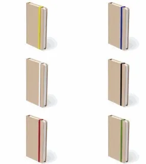 Bloc de notas con tapas de suave tacto acabadas en resistente cartón natural. De 100 hojas lisas, con elástico de sujeción y marcapáginas de tela a juego.
