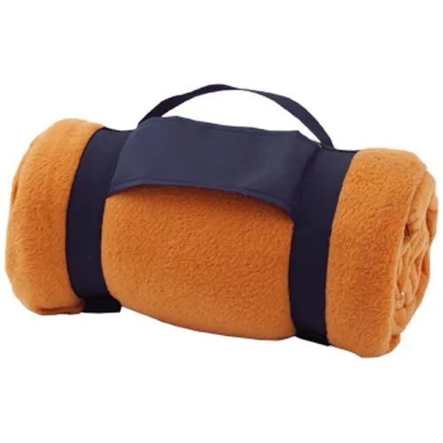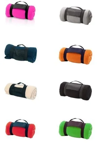 Manta de 130x160cm en variada gama de vivos colores. En material polar fleece anti-pilling de 180g/m2 y con asa de transporte de cierre de velcro en suave poliéster.