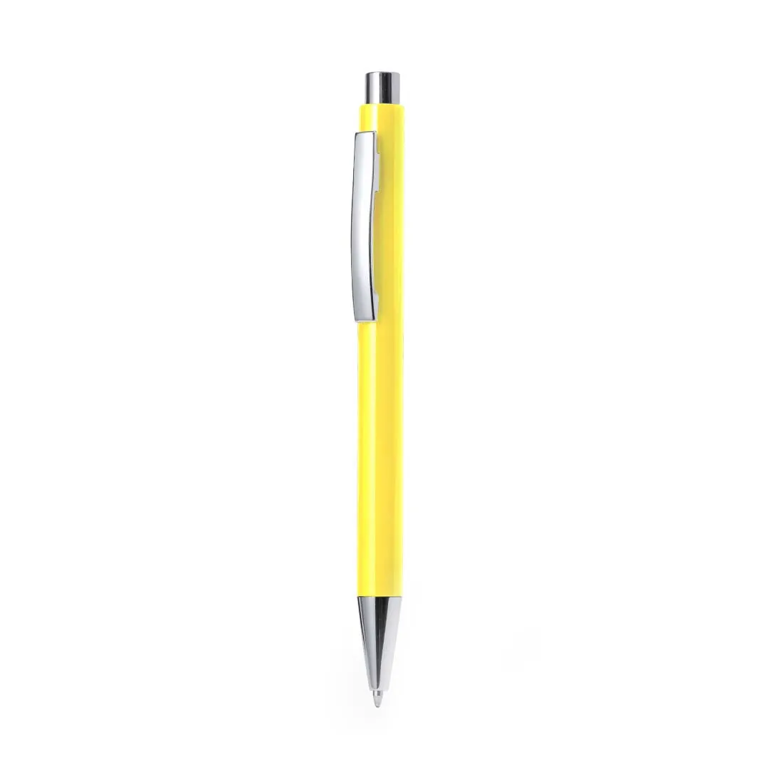 Bolígrafo de mecanismo pulsador en resistente ABS. Fabricado con una elegante combinación de cuerpo en diversos y llamativos colores. Este bolígrafo cuenta con botón superior, clip y punta en acabado cromado. De tinta azul.