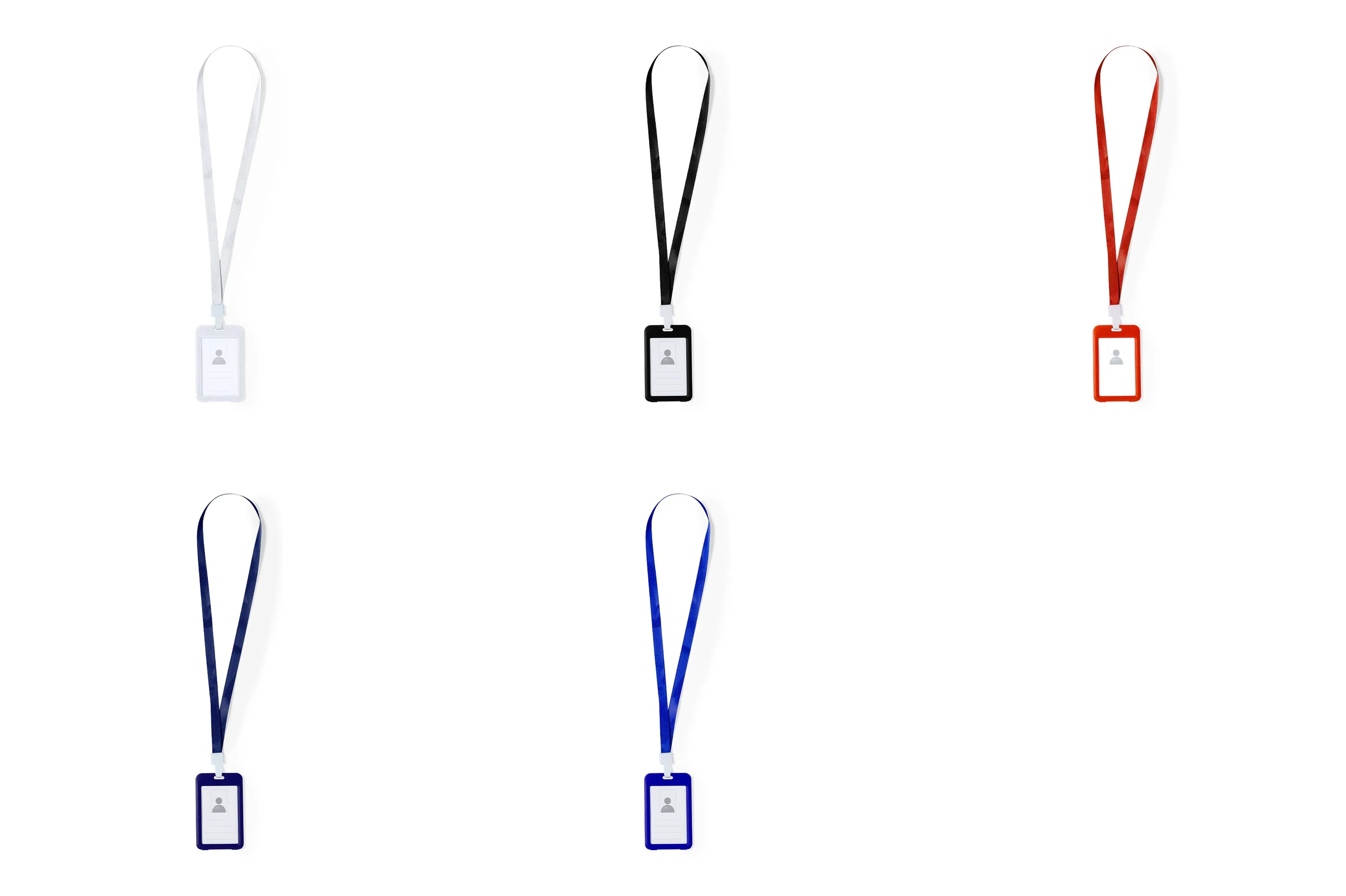 Identificador lanyard fabricado en suave poliéster. Portatarjetas con ventanilla de PVC y mosquetón en resistente plástico. Disponible en variada gama de colores.