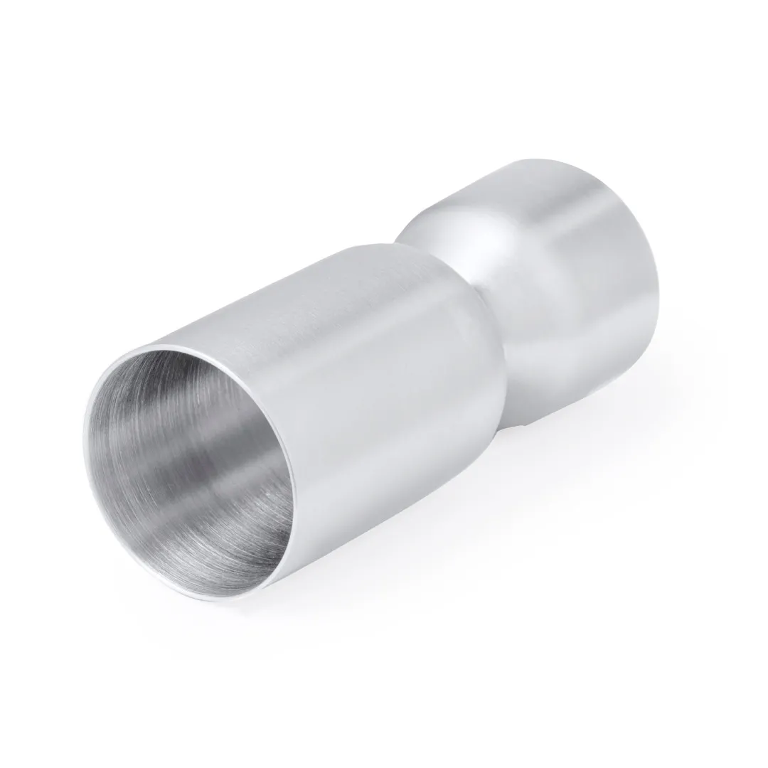 Medidor de bebidas en acero inox de acabado mate. Diseñado especialmente para marcaje en láser y presentado en caja de diseño kraft.