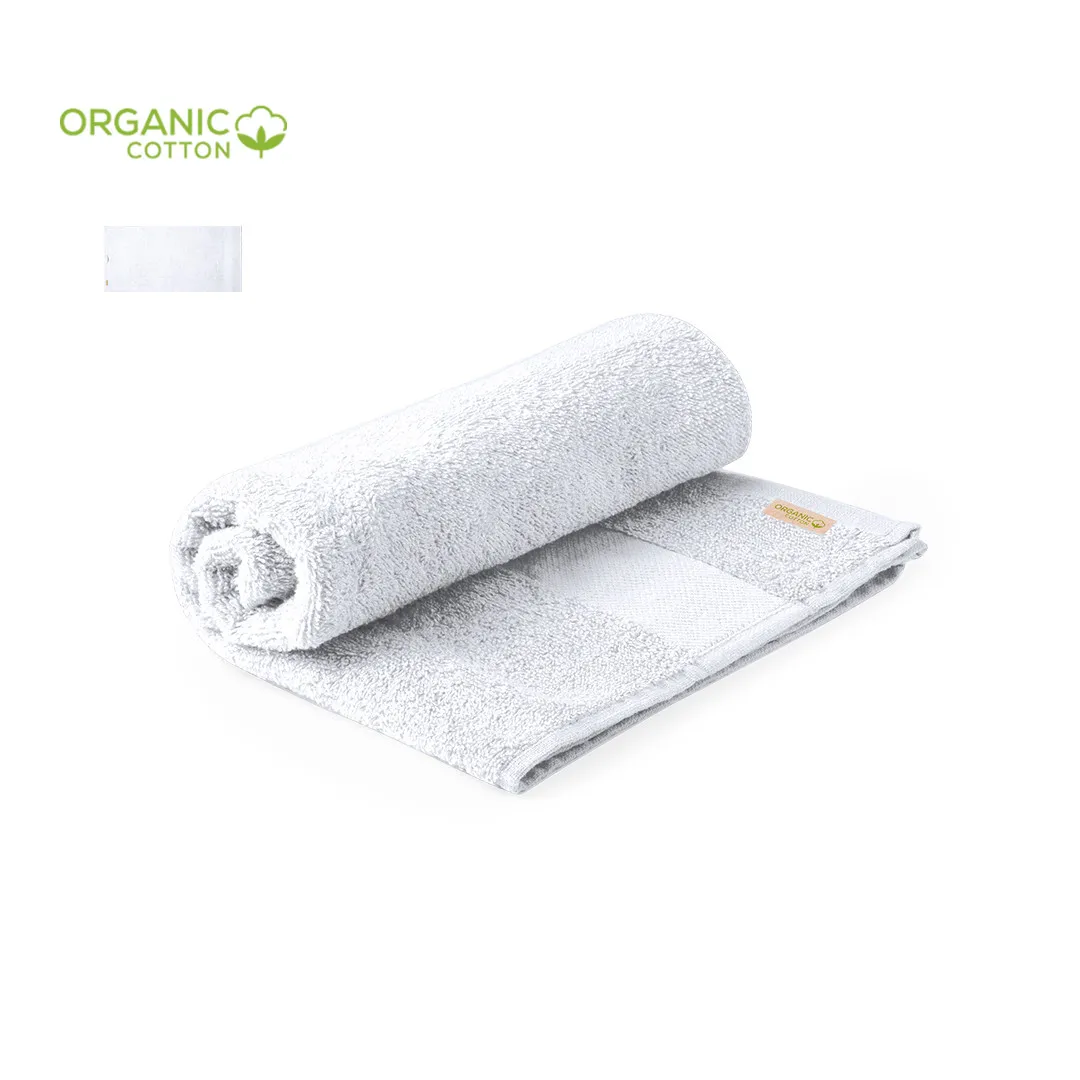 Toalla absorbente confeccionada en Algodón Orgánico de 350 g/m2. Con un tamaño de 70x140 cm, está disponible en una variada gama de colores. Con logotipo Algodón Orgánico en etiqueta. Presentada en bolsa individual reciclada.