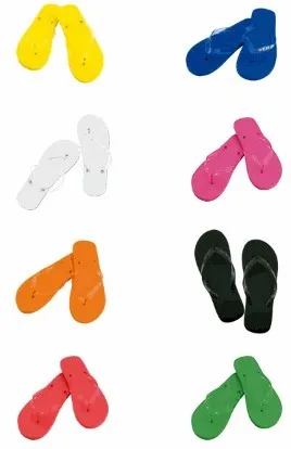 Par de chanclas con suela en resistente EVA y tira de PVC a juego en variada gama de vivos colores. Disponibles en tallas 36-38, 42-44.