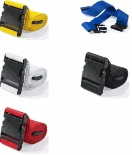 Cinta para maletas de 180cm en resistente poliéster de acabado en vivos colores. Con cierre de clic y accesorio de ajuste.