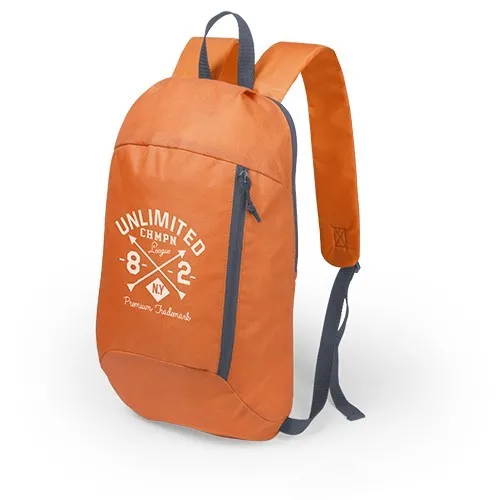 Mochila en resistente poliéster 600D de desenfadado diseño outdoor, con cierre de cremallera y bolsillo frontal. Accesorios en color gris, con acolchado en espalda y cintas de hombros.