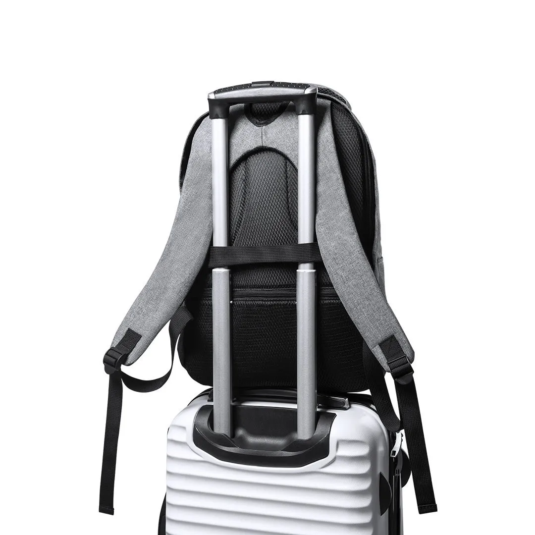 Mochila de negocios antirrobo de línea nature y en resistente 600D RPET efecto melange, elaborado a partir de plástico reciclado para así fomentar la reutilización de residuos plásticos y contribuir a la sostenibilidad del planeta.
