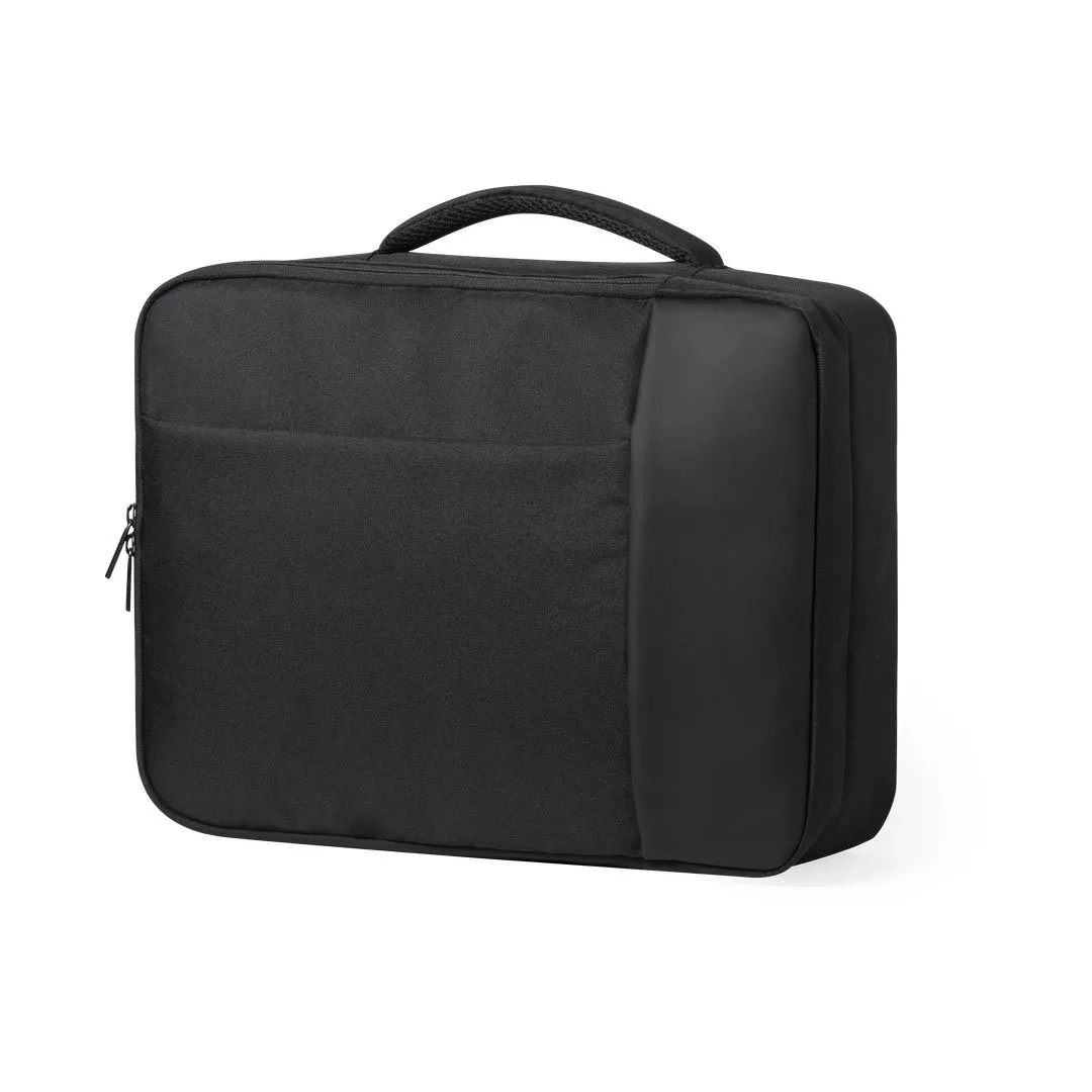 Mochila portadocumentos en combinación de resistente poliéster 300D con detalles en polipiel. De diseño urbano, compartimento principal con cierre de cremallera de doble tirador y bolsillo acolchado para portátil de hasta 15 pulgadas. Con cintas de hombros y espalda acolchadas, de ajuste regulable. Con accesorio para ajuste en trolley y bolsillo para ocultar las cintas de la espalda cuando se usa como portadocumentos.